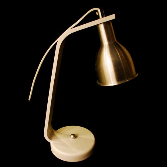 This metal desk lamp boasts a modern design. The arm features a crisscrossing construction to give an artistic touch. The circular base comes with an on/off switch at the center. This contemporary desk lamp with an eye-protection function is great for reading.