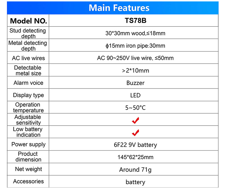 Metal Detector 3in1 test Factory Direct Sale TS78B Portable Stud Finder Metal Wire STUD Detect