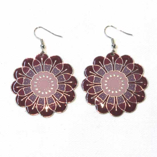This pair of metal earrings comes with a floral pattern. The epoxy metal has a layer of lamination for added shiny. This pair of earrings is especially suitable for outgoing ladies.