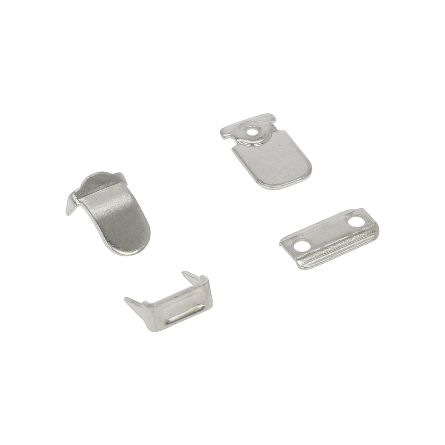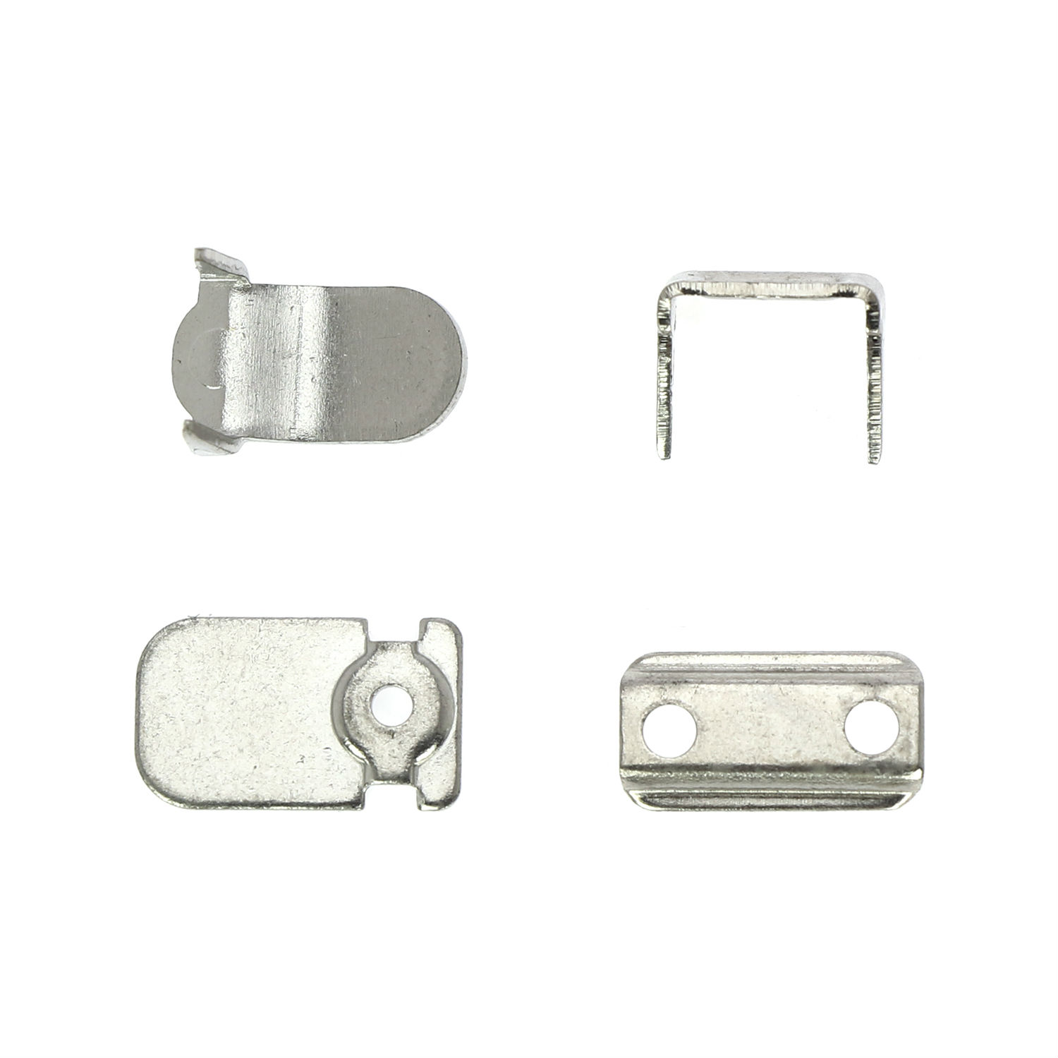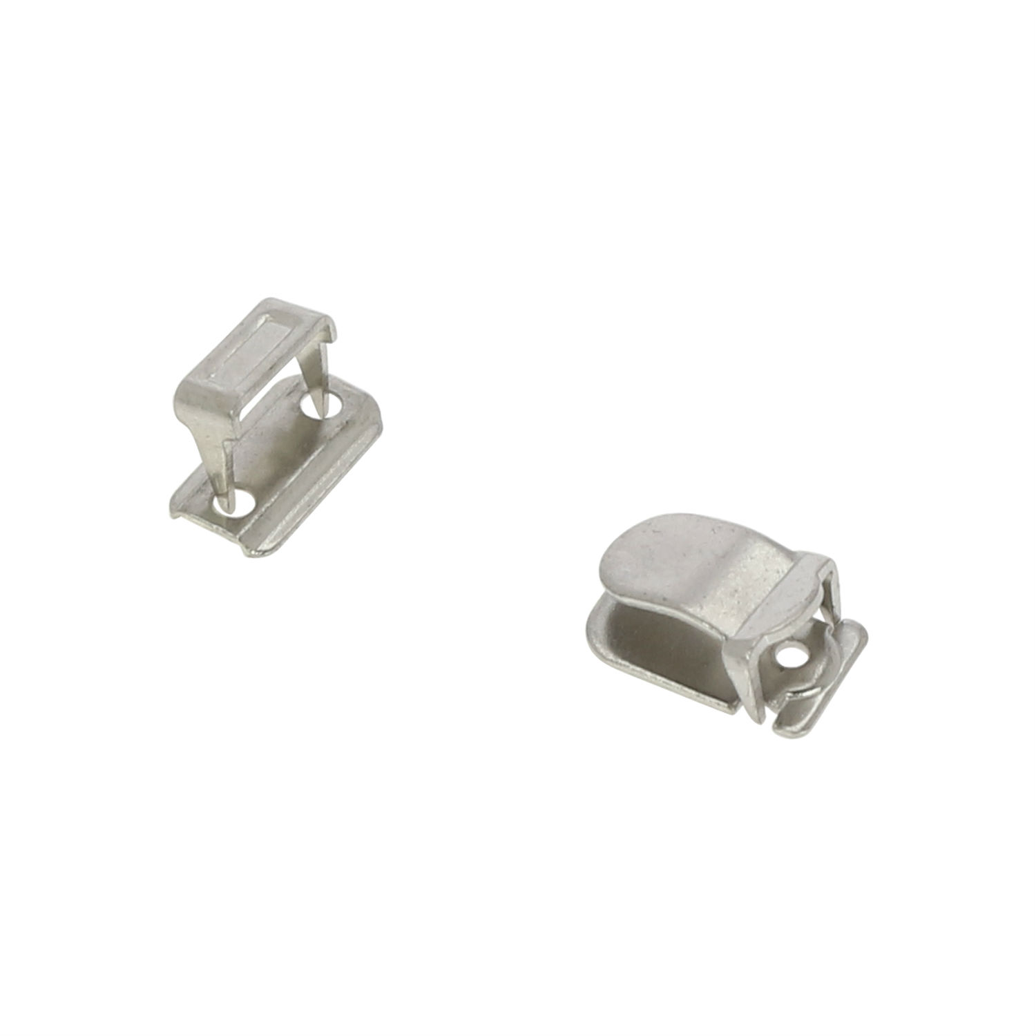 A clean-looking closure alternative to buttons, this set of metal hook and bar can be fully concealed when fastening the waist of tailored pants and skirts. All parts are made of brass and plated in a matte finish, allowing quick and easy attachment with no sewing needed.
