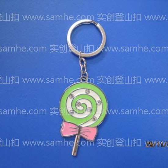 This is a keychain with a durable metal ring. It is adorned with a colorful candy charm for a touch of cuteness. This keychain is made with excellent workmanship and attention to detail.