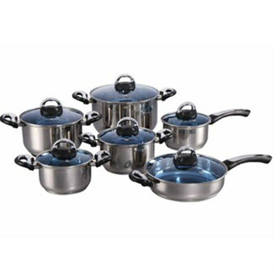 Use this wonderful set of cookware to prepare delicious dishes for your beloved ones. This cookware set is delicately made of quality stainless steel material to give stout construction and long serving time. Each piece is equipped with a blue clear glass lid featuring a Bakelite knob and a vent hole for extra functionality.