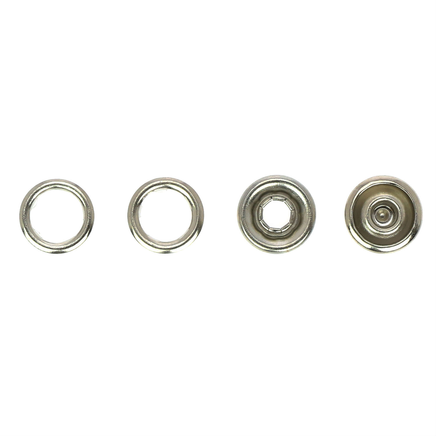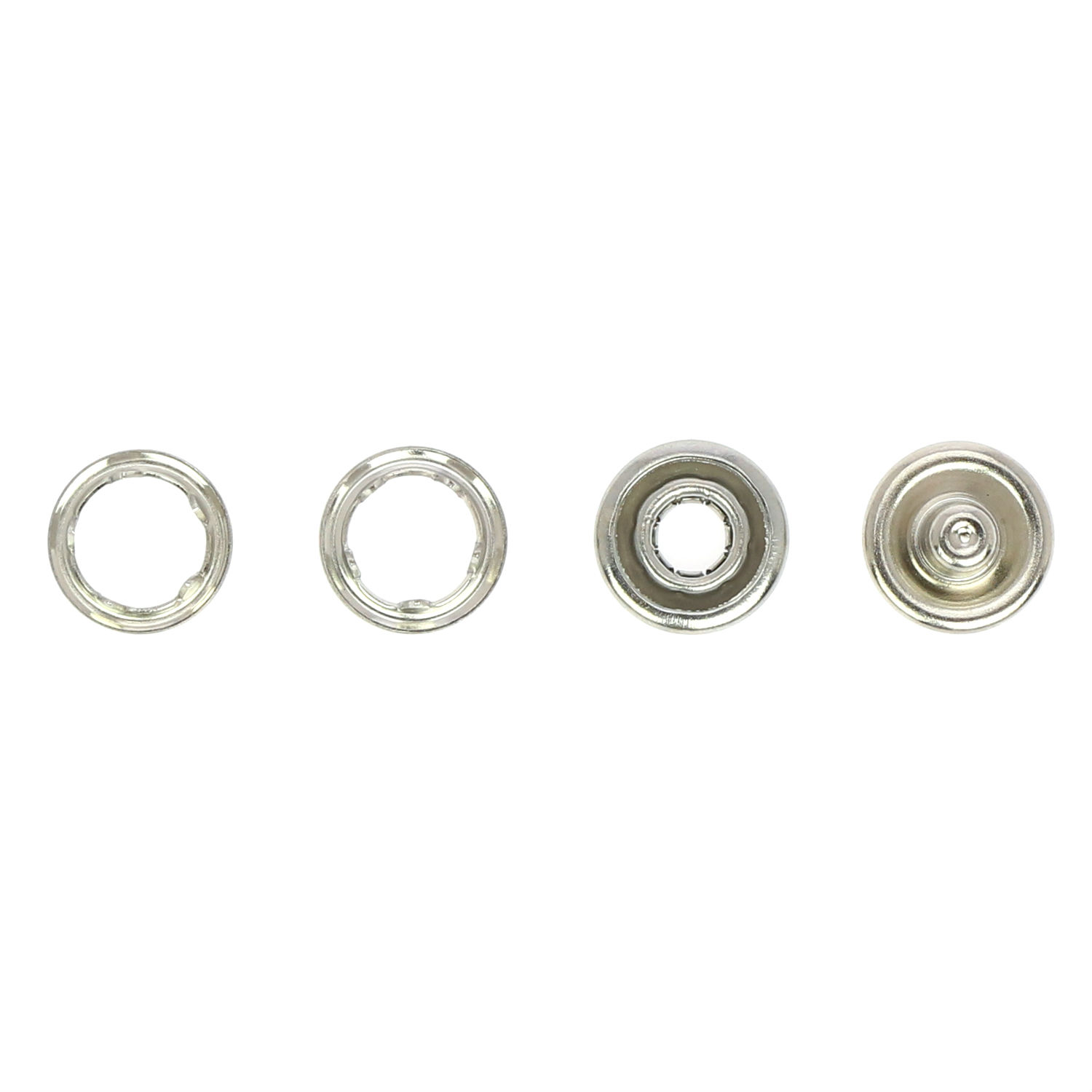 This full ring popper set contains 4 pieces - a ring, a socket, a stud, and a post. The pieces are made to last with a solid brass construction. It allows convenient, one-hand fastening, which is suitable to be a functional part of garments that require frequent changing like baby clothing and accessories.