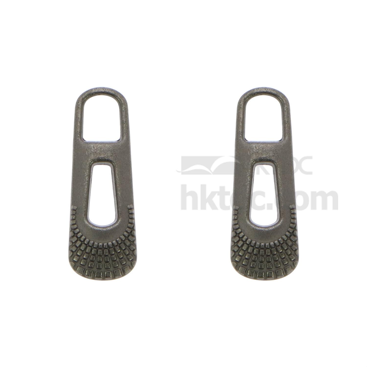This alloy zipper puller comes in a classic design and has a textured exterior to ensure a good grip. It has a plated finish to offer a vintage look and can pair well with zippers in different styles. The alloy zipper puller is well-crafted to last a long time and is a reliable component for garments.