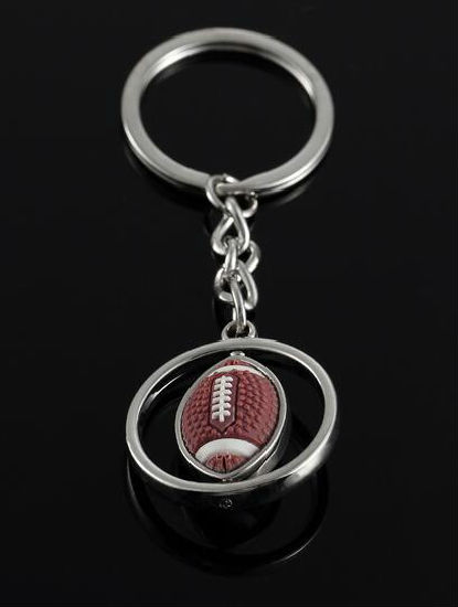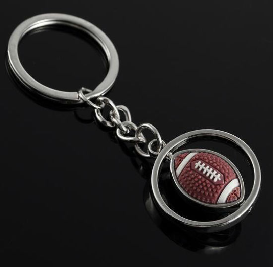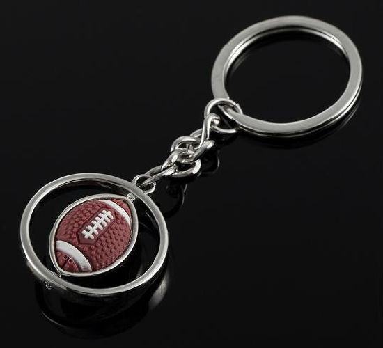 Metal rugby Keychain displayed is made of zinc alloy material