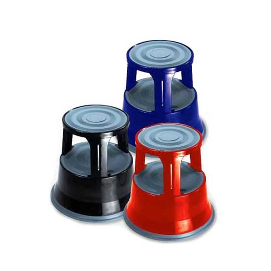 These metal step tools feature round-shaped designs. They offer a sturdy place for you to sit or stand. The step stools come with red, blue and black colors for your selection.