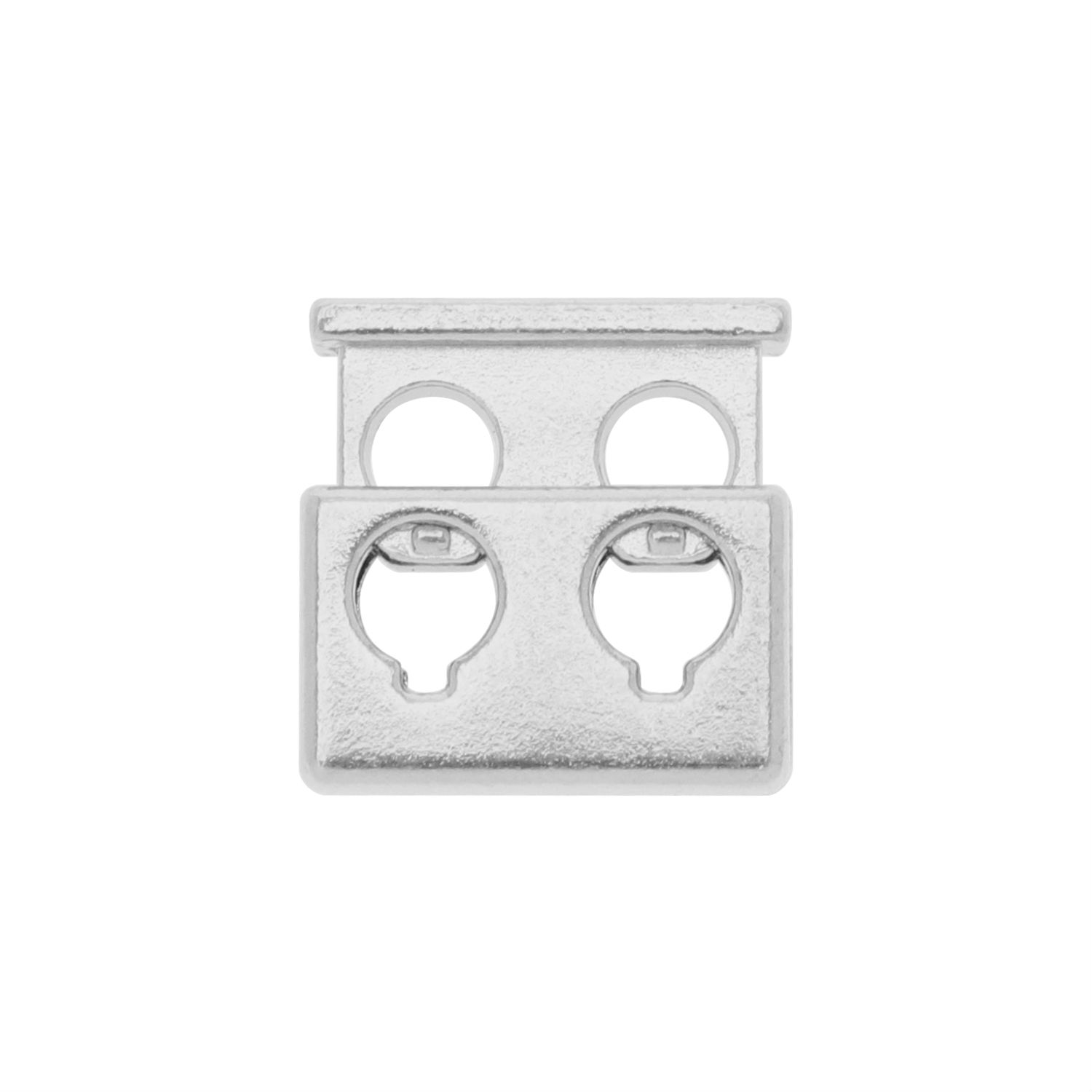 Upgrade your haberdashery kit with this double-hole metal stopper. Framed into an oblong silhouette with sleek-looking lines, this metal alloy cord lock is versatile enough for crafting a wide range of garments from pants, coats, to sweaters. Rounded off with plated finishes, it boasts to look as good as new for years to come.