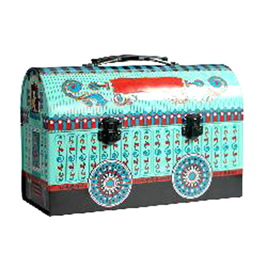This tin box is finely built with two buckles and a small handle. It is nicely painted into a colorful carriage for classic charm. This lovely box is great for a wide variety of products including confectionery, stationery, toys, etc.