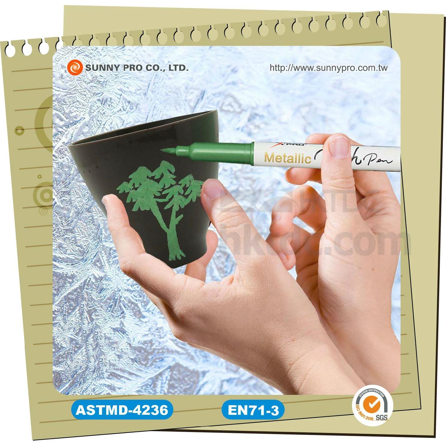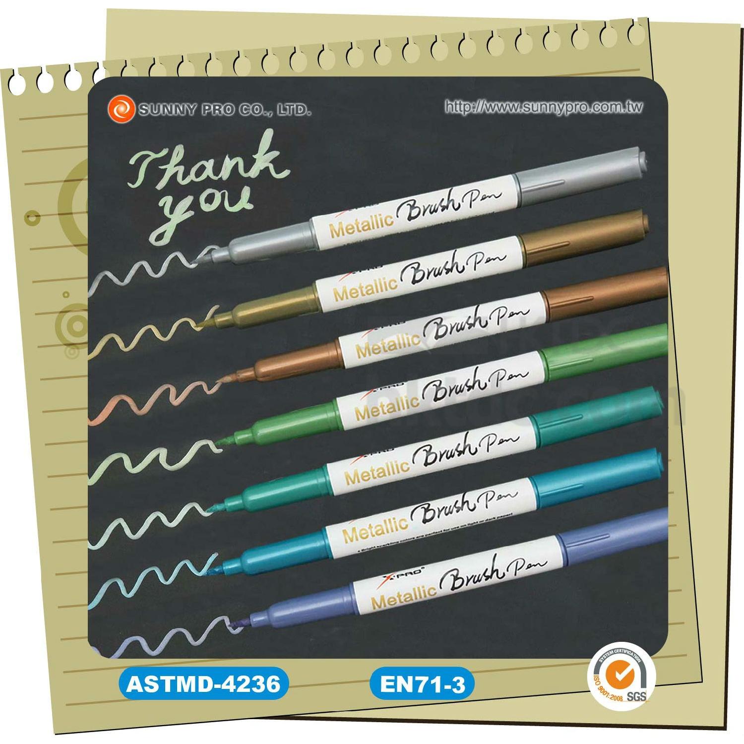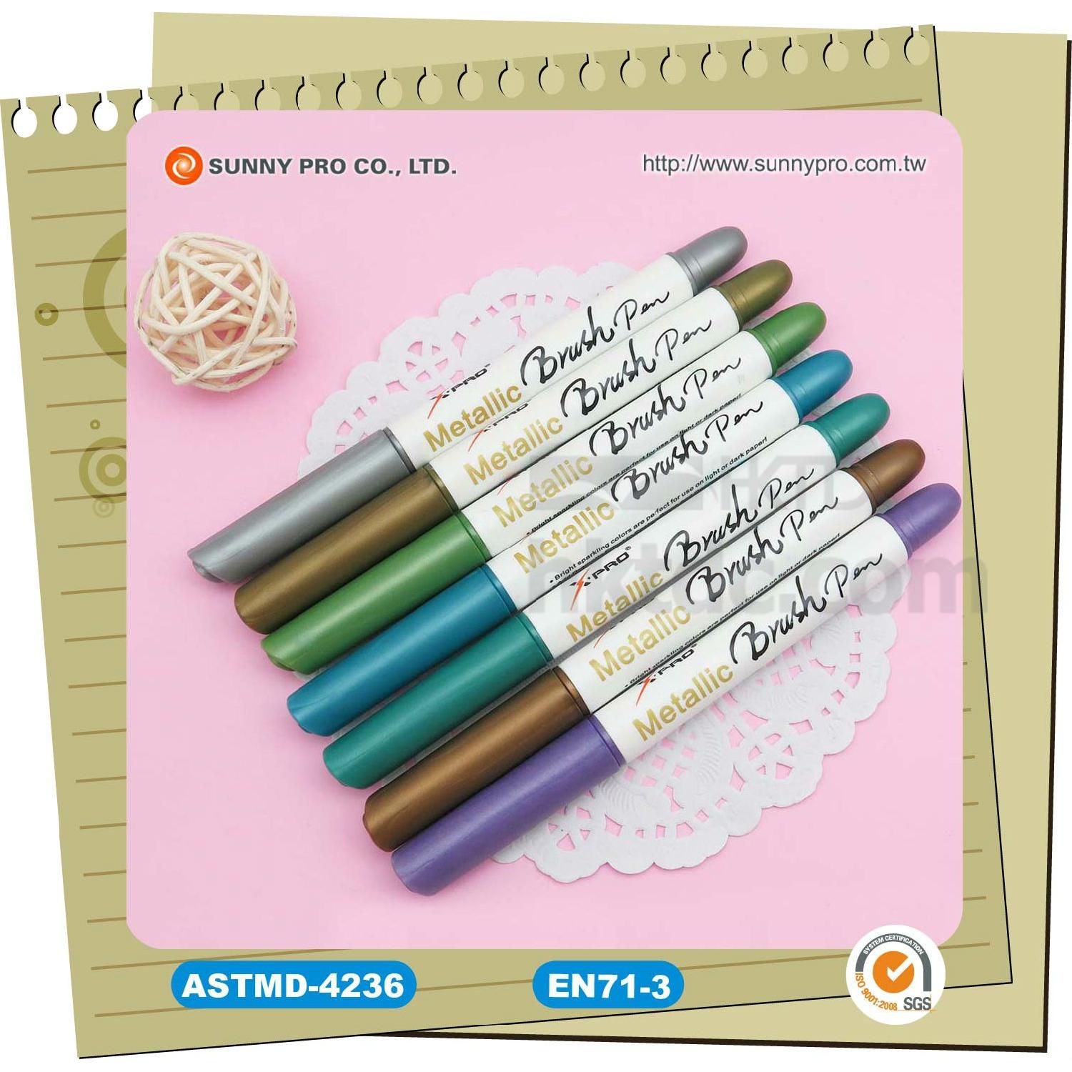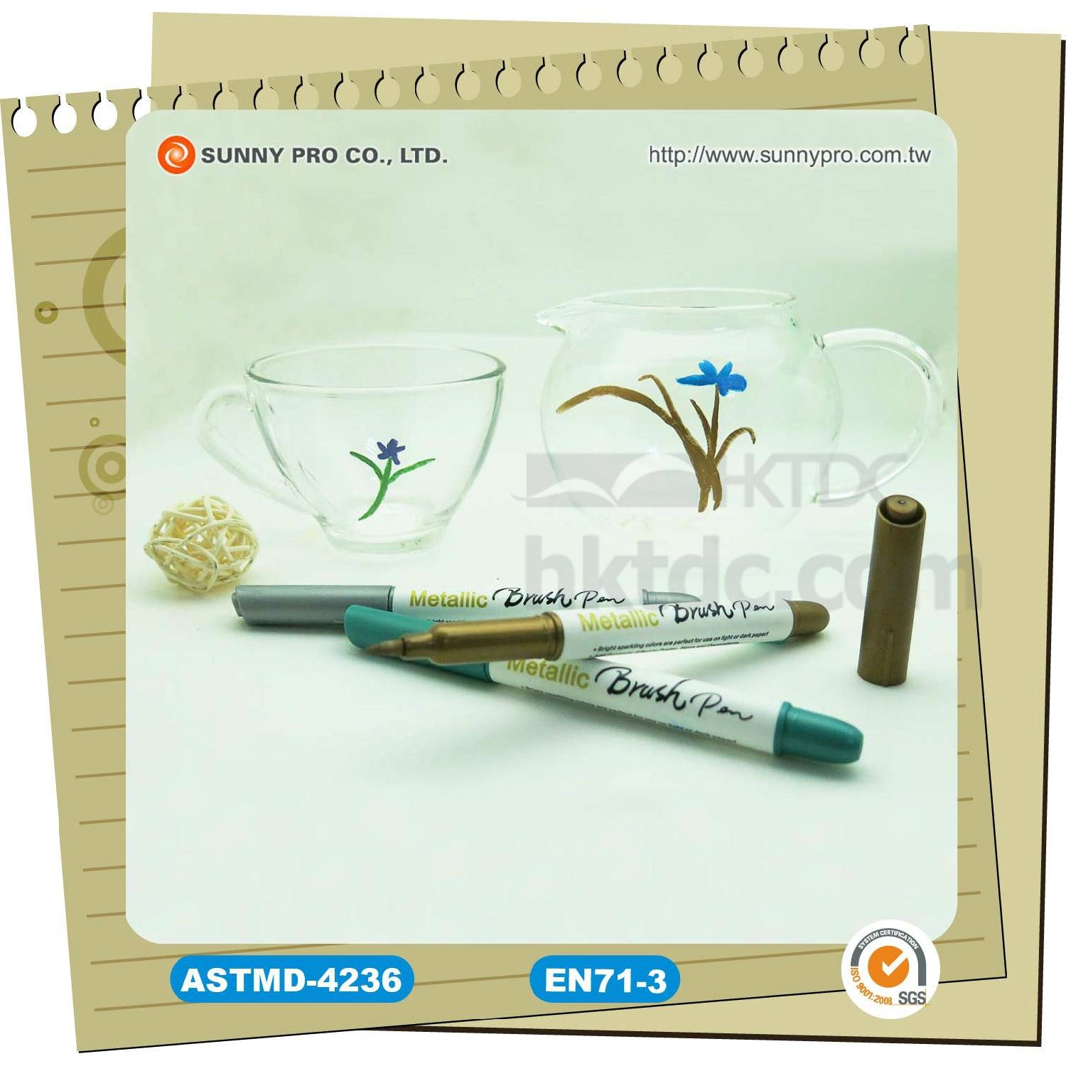 This water base metallic brush marker pen uses water based pigment ink and can quickly dry. It is suitable for writing on any smooth surfaces such as wine glasses. The marker pen allows you to write in metallic colors and is ideal for DIY art projects.
