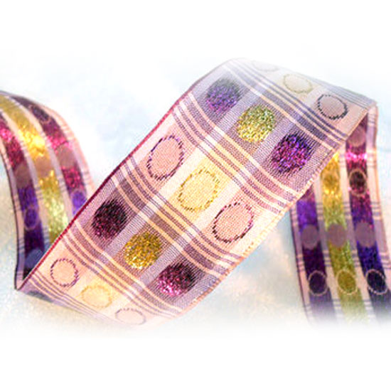 This is a metallic ribbon that comes with fashionable circle patterns. The circle patterns shine upon each crease, enriching the design and creating a glorious look on all kinds of products. This beautiful metallic ribbon is great for every occasion.