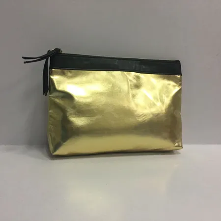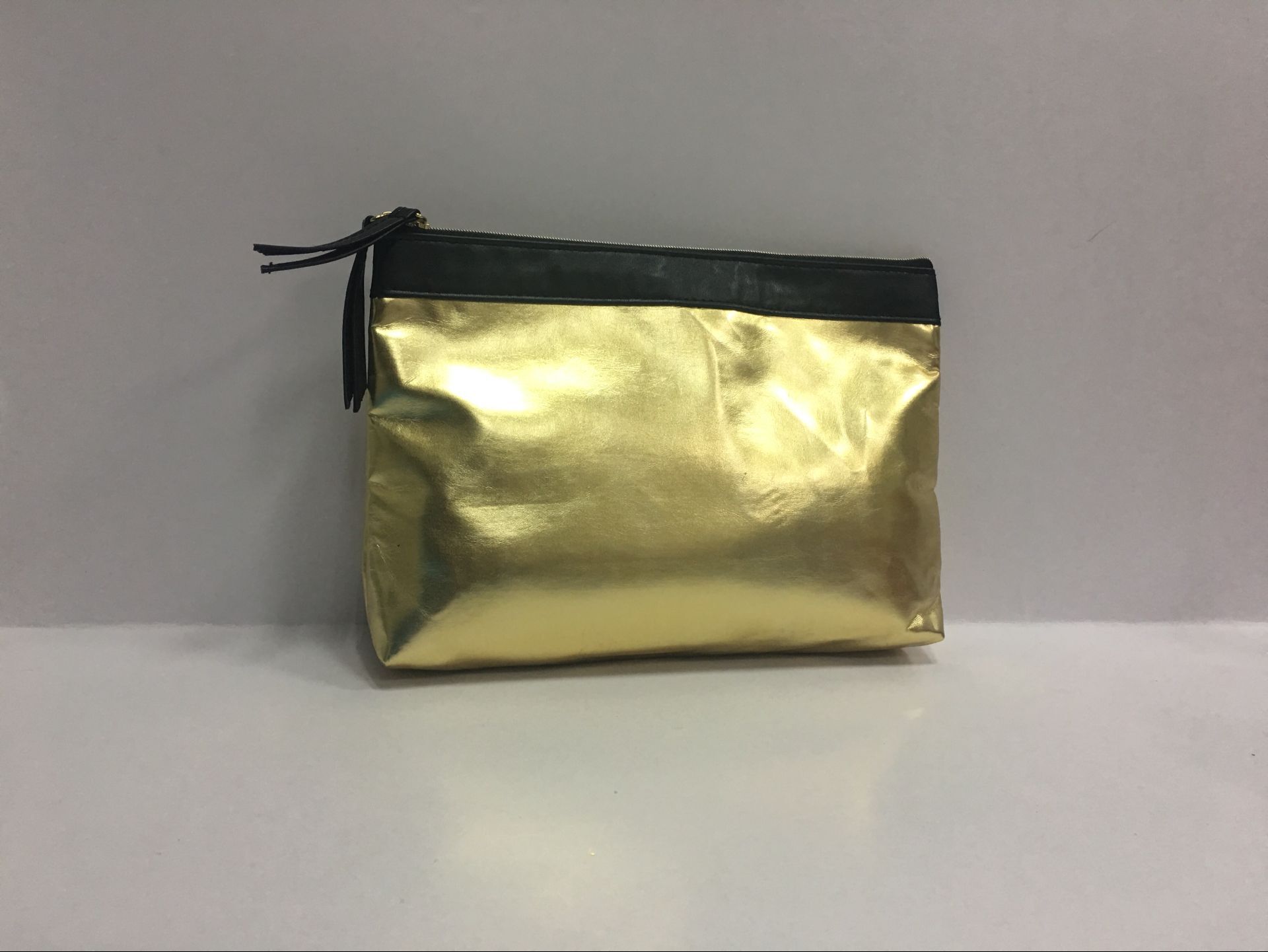Cosmetic bag Body material:metallic pu & pu /lining:190T /Closing: 3# nylon plating zipper + pu puller