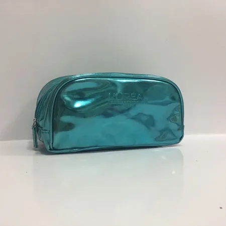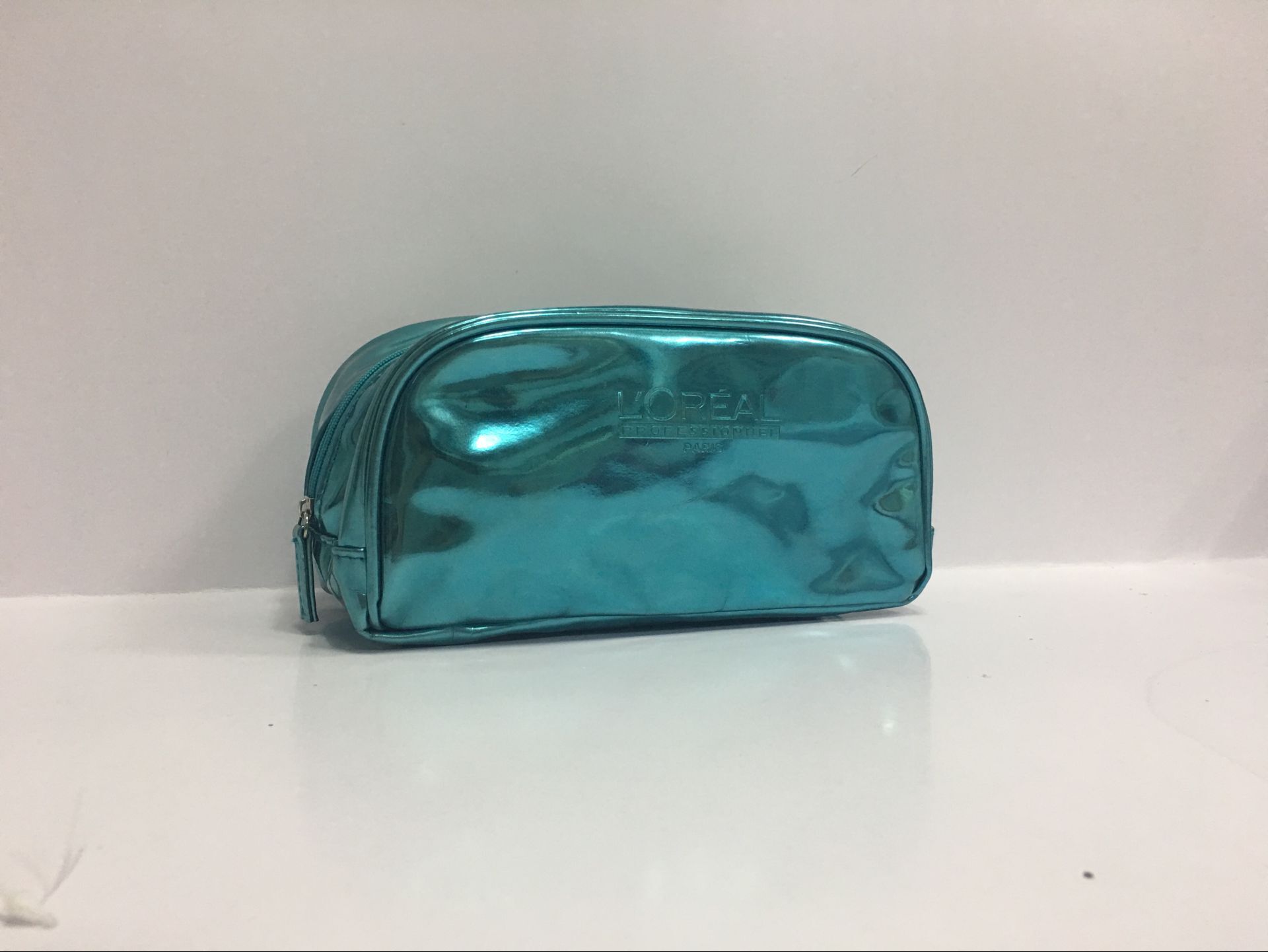 Cosmetic bag Body material:metallic pu /lining:190T /Closing: 3# nylon zipper + pu puller / 1 emboss logo