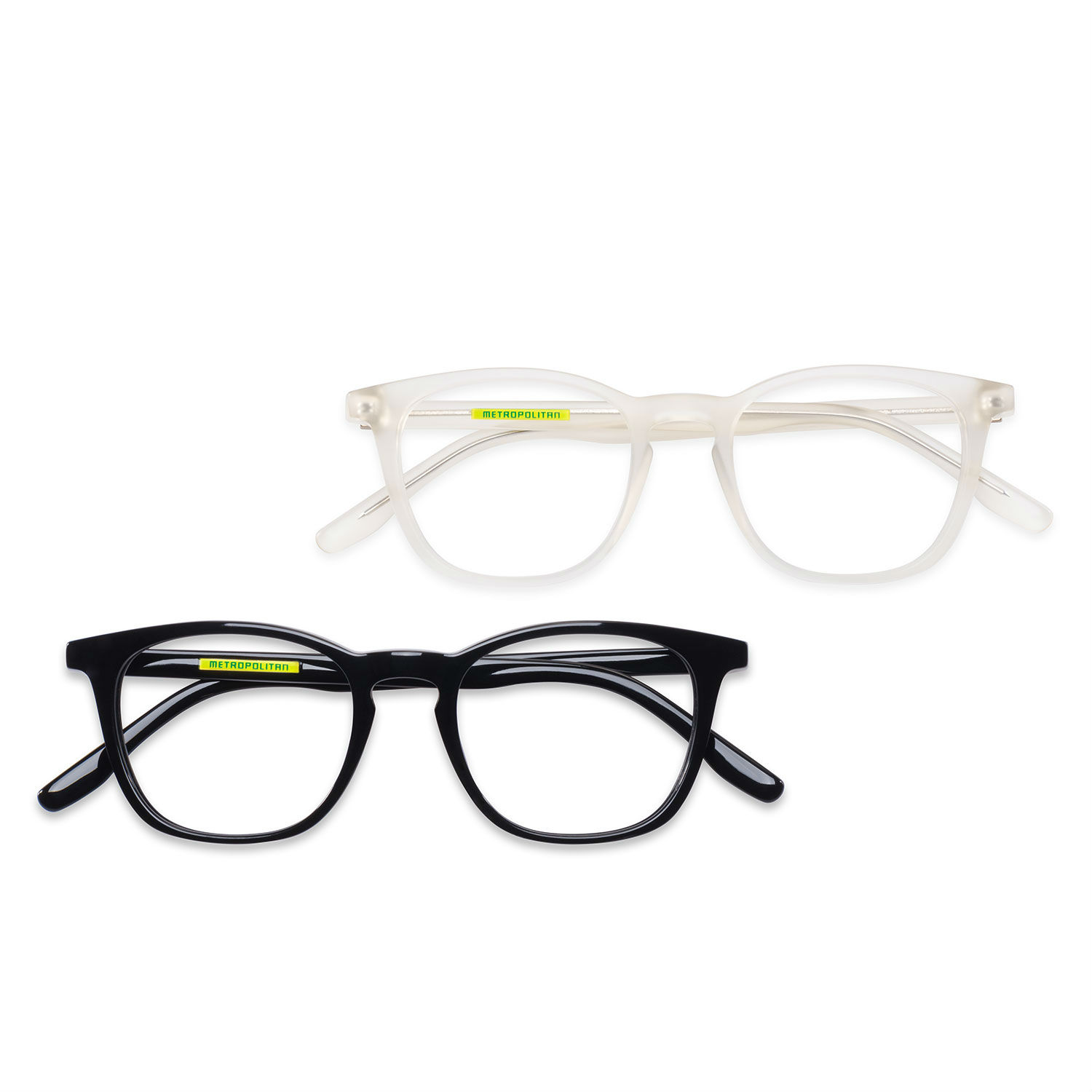 Acetate frame a la woody Allen with a simple decor with milled Metropolitan logo.