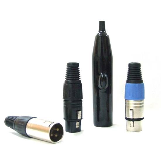 Presented are a series of microphone adaptors. They come in various lengths and made of different materials. They have unique operating voltages.