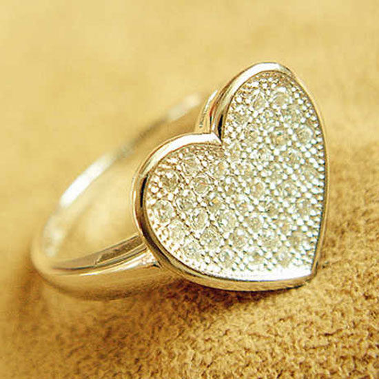 The micro setting ring features a heart-shaped decoration on top. The latter is paved with CZ stones for a shimmery effect. This finger ring makes an ideal gift choice for your beloved one.