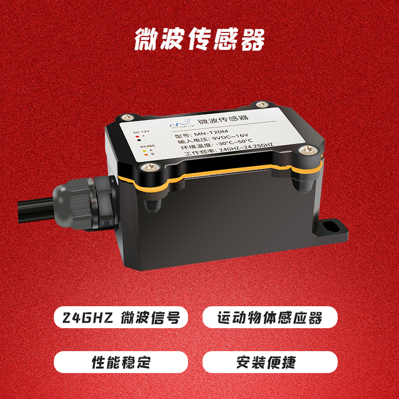 MicroNature MN-T20M Microwave Sensor is a motion sensor designed to detect moving objects using a 24GHz microwave signal based on the Doppler radar principle. When the sensor detects movement, it outputs 485 data. Its main application is dynamic detection in various areas, offering good consistency, stable performance, and easy installation.