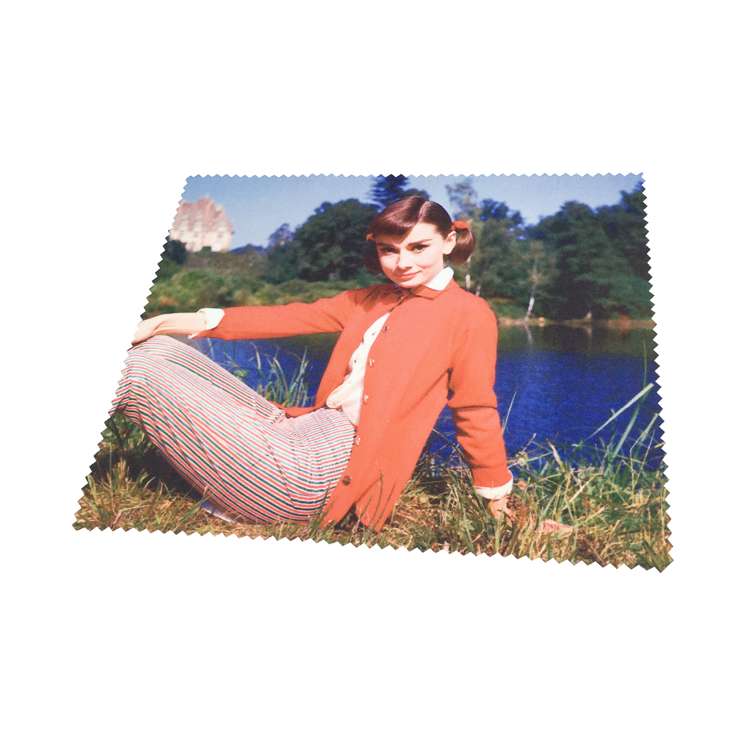 Our products material is microfiber, the size is 15*18CM, we can hot transfer the picture in cloth, Our cloth can make our glasses cleaner.