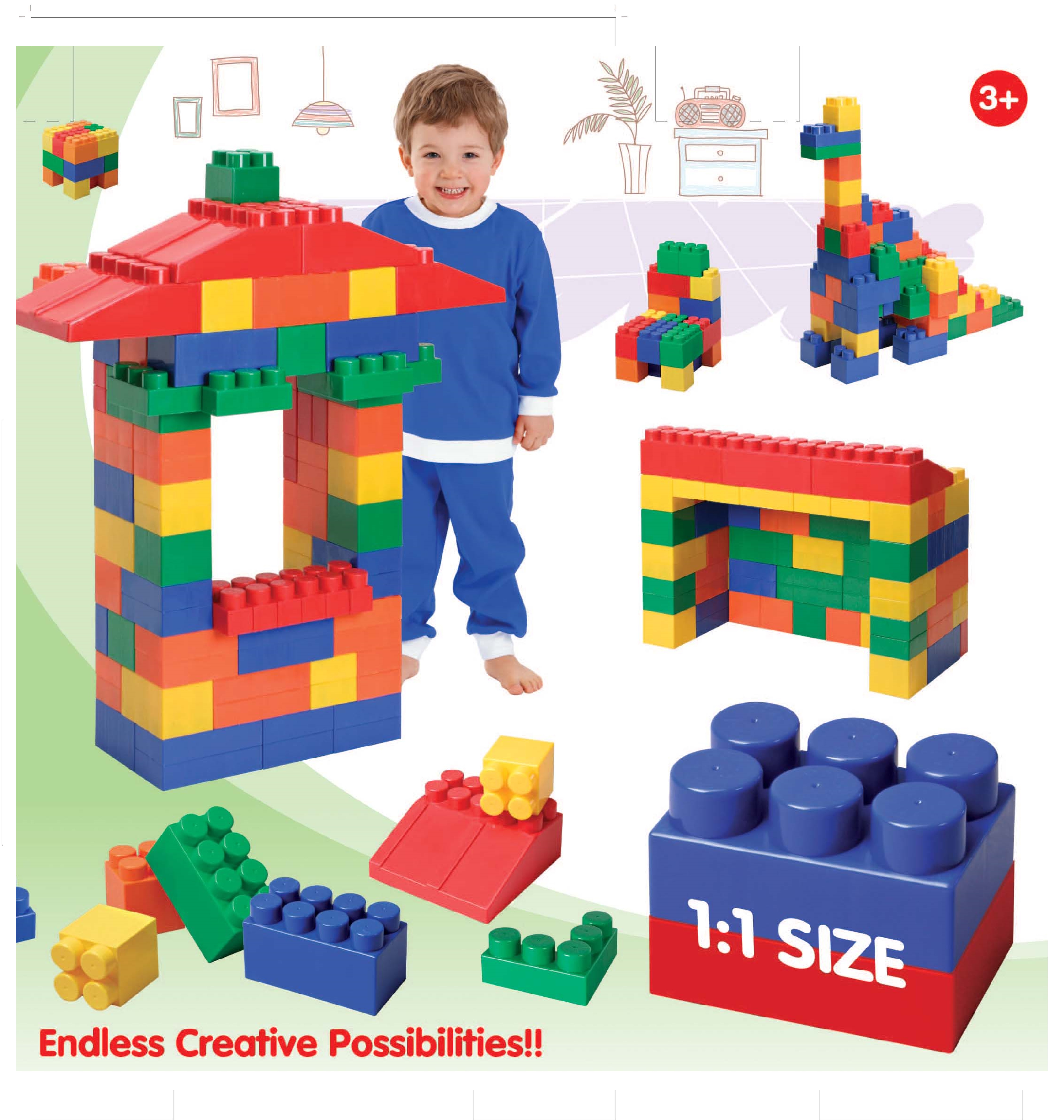 Might big blocks, plastic made, with various shapes and colors, allows user and kids to enjoy construction pleasure.