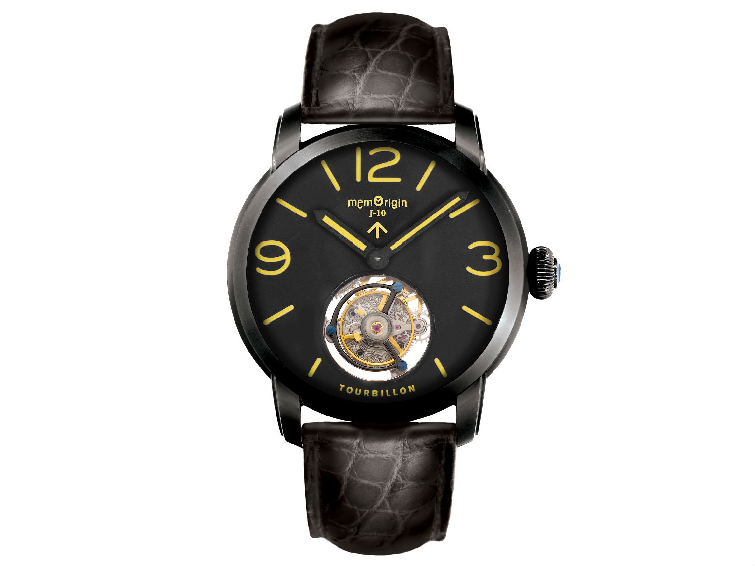 This watch introduces a stylish military design and is constructed of 181 pieces of sub-assembly modules and 19 jewels to show exceptional class. It has a round black dial with 2 hands and is equipped with a tourbillon located at 6H position. The watch offers 40 hours power reserve and is excellent for everyday wearing.