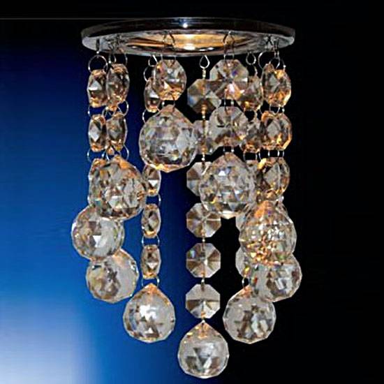 This mini chandelier rejuvenates small space by providing light with warm hues and opulent details. It features water-drop-like crystal accents in different sizes.