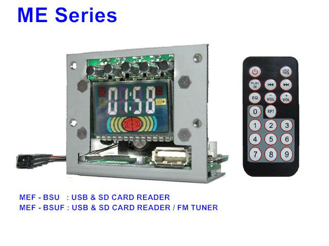 ME Series Module is a mini USB & SD Card Reader plus FM Tuner. It is good for use on PA, AMP or portable activity product.