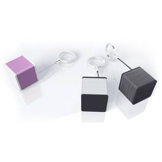 These are mini-speakers in a cube shape. They can be used with rechareable Li-ion battery. These mini-speakers are designed with different colours such as silver,purple and grey.