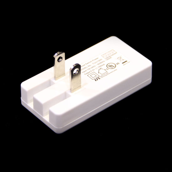This USB charger comes with a white rectangular casing that gives sturdy construction. The charger is designed with two flat pins for connection. The mini-sized design allows you to carry it around easily.