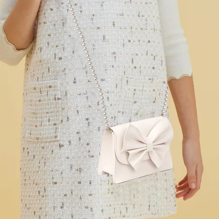 This girl's small handbag with an imitation pearl design,that gives your little princess a touch of nobilityand makes her the center of attention for any occasion.