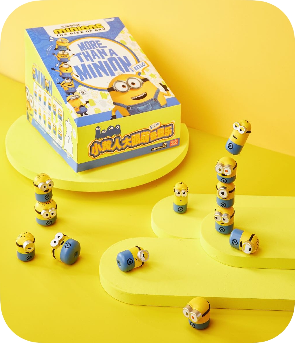This is Minions Q-Topping toys. The packaging style is blind box, and Minions is randomly selected. They can be stacked high for fun and it's a very stress relieving trendy toy.