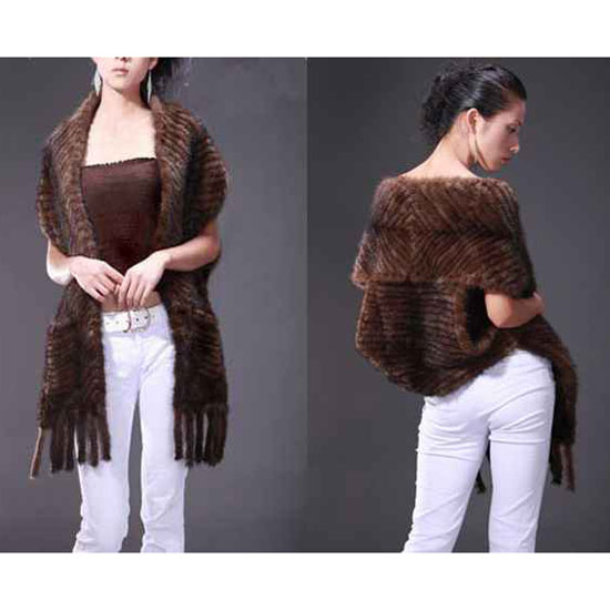 This wrap boasts a zigzag pattern created with high-quality fur. This interesting wrap looks like a scarf on the front and a vest in the back. This fashionable mink wrap is a stylish choice in winter.