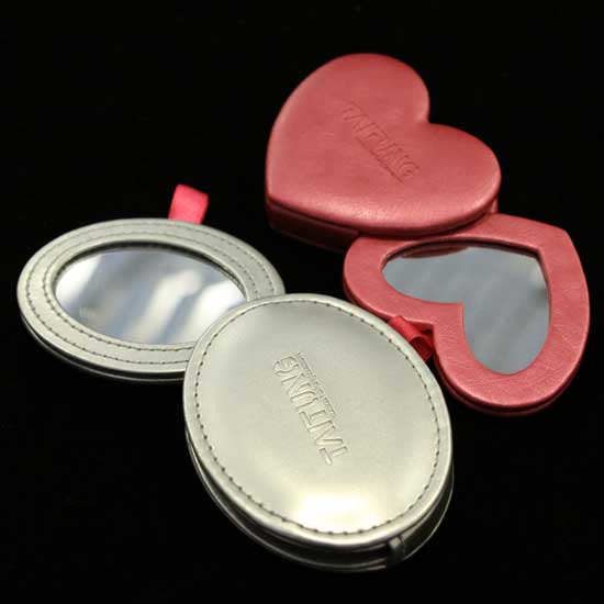This mirror box in the picture is covered with PU leather for an elegant look. It is slim enough for being carried in cosmetic bags. This mirror box is a handy and essential make-up accessory for young ladies.