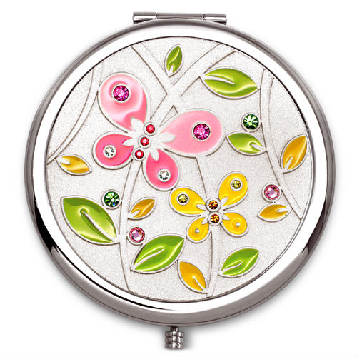 Embossed butterflies & plant pattern with enamel painted and color stones.