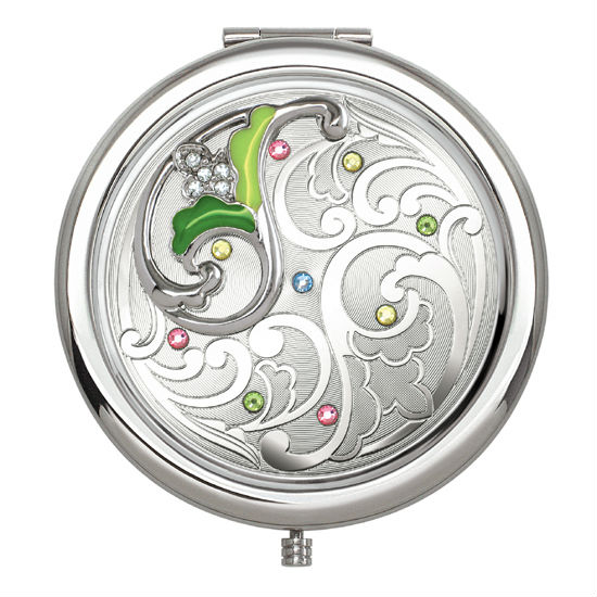 Embossed phoenix pattern with epoxy painted, white and color stones.