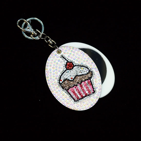 This mirror key ring is made of top-quality plastic material offering an extra-long serving time. The acrylic stones are attached to offer a glittering presence. This mirror key ring is an excellent promotional gift choice.