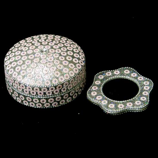 This gorgeous gift set features a box and a mirror. They boast a sparkling silvery construction with floral patterns all over. This beautiful accessory set makes a great gift idea.