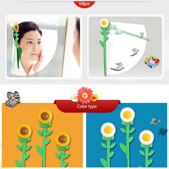 This mirror wiper is designed for removing the fog on your bathroom mirror. This mirror wiper comes with a sunflower or daisy design for an attractive look. Its excellent design can stand comparison with decorative products.