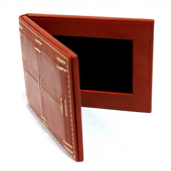Showcased here is a delicate cosmetic mirror in a rectangular shape. It comes with a photo window for you to keep your precious photos always. The holder is made of genuine leather for an elegant touch.