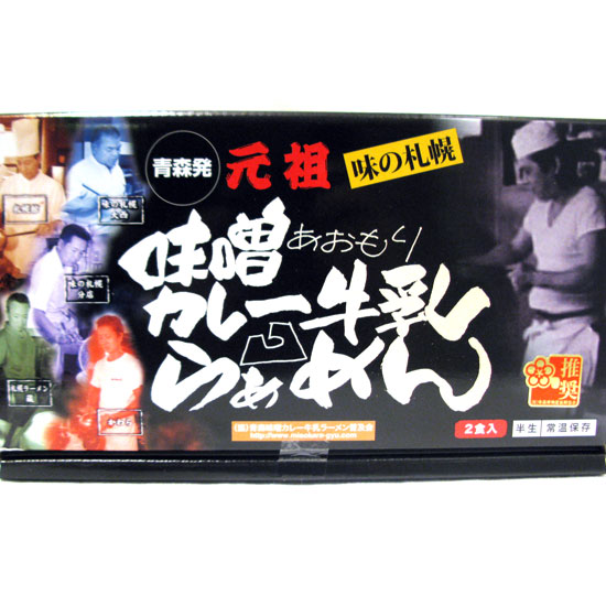 Shown here is a package of miso curry milk ramen produced in Aomori, Japan. The ramen broth has a robust, tangy flavor while the noodles feature a thick, curly, and slightly chewy texture. The instant ramen noodles take only about 3 minutes to cook.