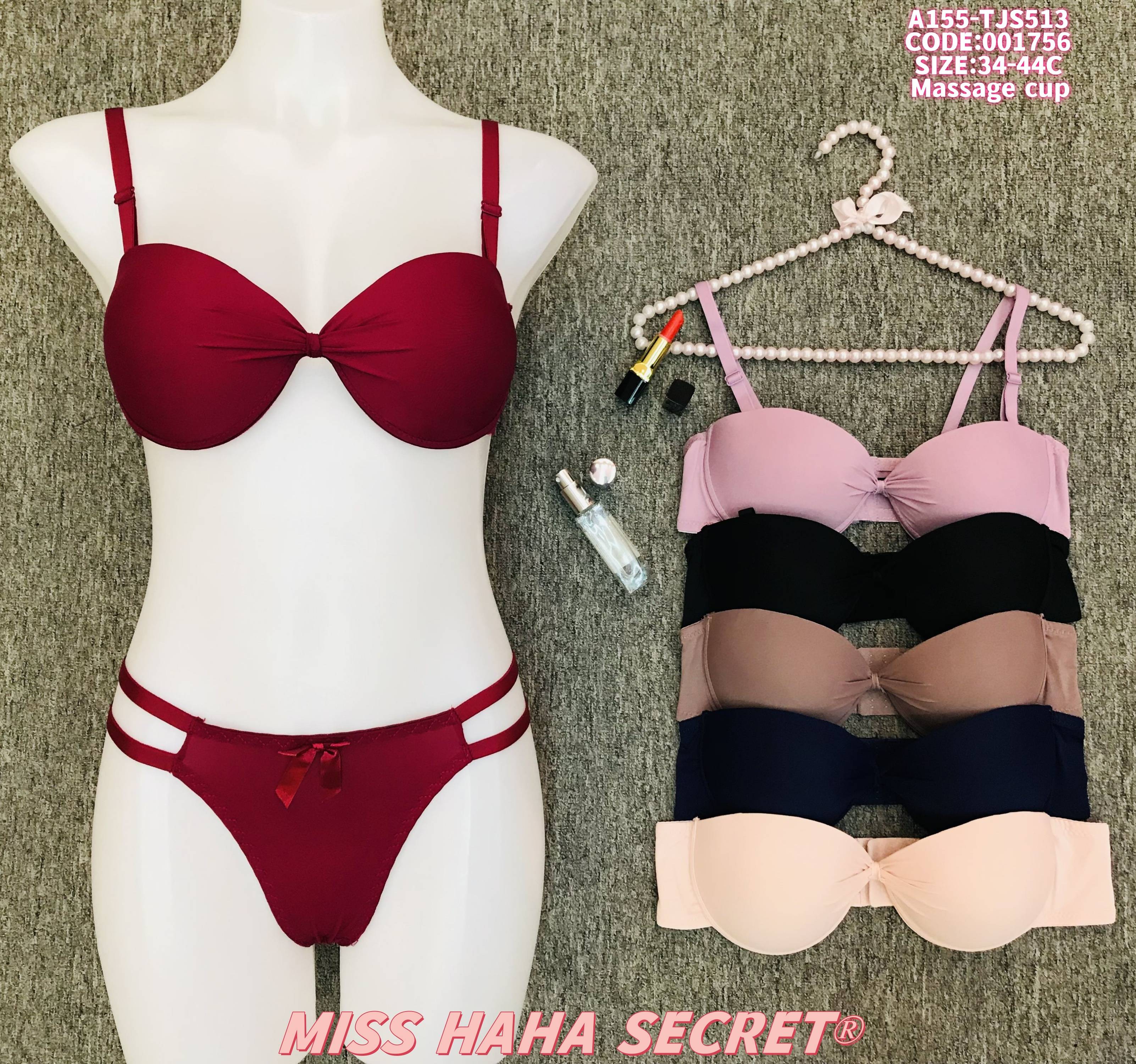 The Miss Haha Secret Massage Cup Lingerie Set blends elegance and functionality. It features a massage cup design for added comfort and support, paired with a charming bow detail on the bra and a matching thong with cutout straps. Available in colors like burgundy, pink, black, brown, navy, and beige,, this set offers a perfect balance of style and practicality, making it an excellent choice for those seeking both allure and everyday comfort in their intimate wear.