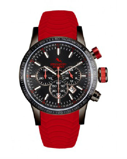 Stainless steel 316L case in 3 pcs, Ion process plating (IP) in black color, Ø45 mm diameter, aluminium tachymeter ring, pump pushers and screw crown, luminous index, mineral glass, soft silicon band, water resistant 10 atm., Citizen chrono movement with dateTechnical DetailsRef. Code SM102S/BK/NR/RS
