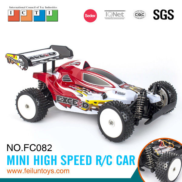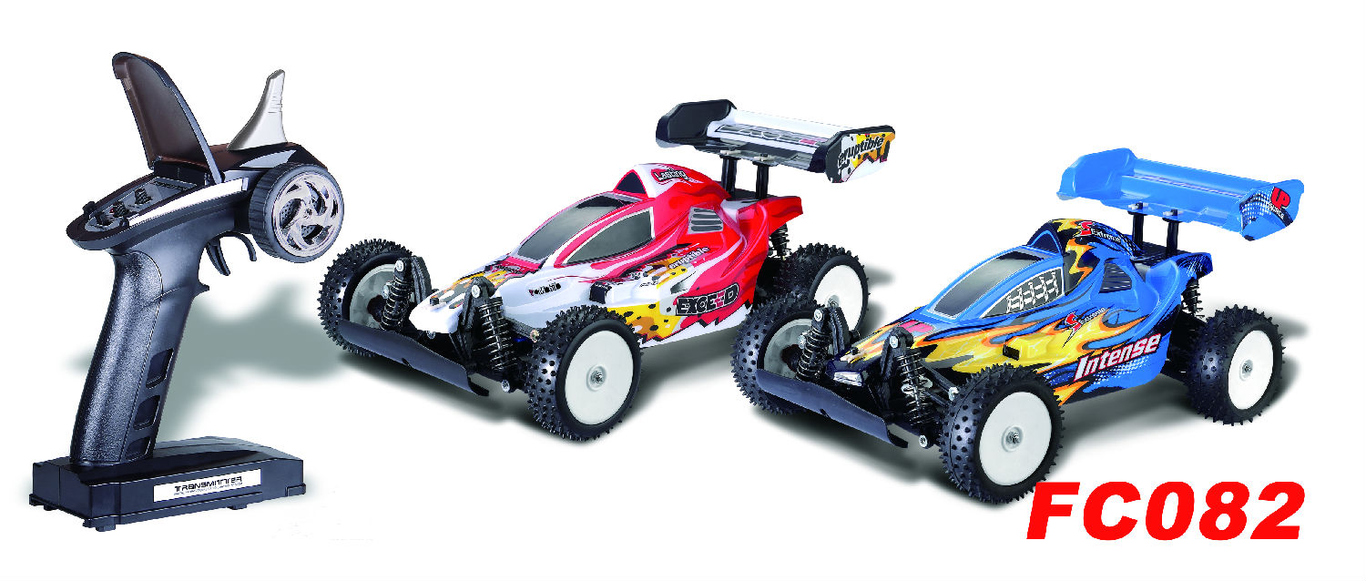 This cross-country model car comes in a 1 to 10 scale and has a sporty and colorful design. It has 4 large wheels for moving and has shock absorbers on the wheels. The car can be remote controlled and flaunts a high speed.