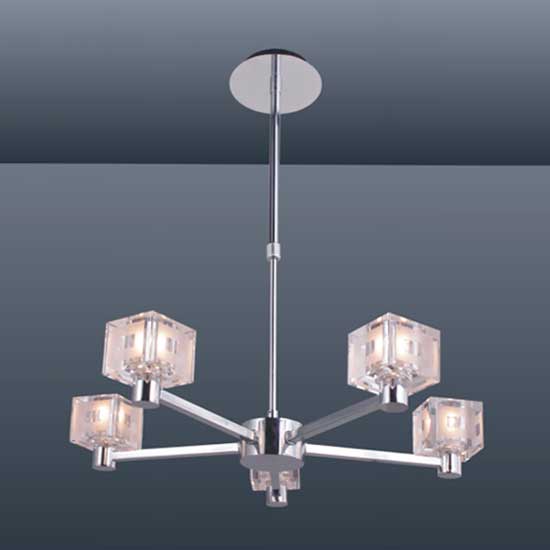 This modern ceiling lamp features a simply yet tasteful design. The ceiling lamp is constructed of four cubic lamp shades and polished metal arms. It is a stylish lighting option for your living room.