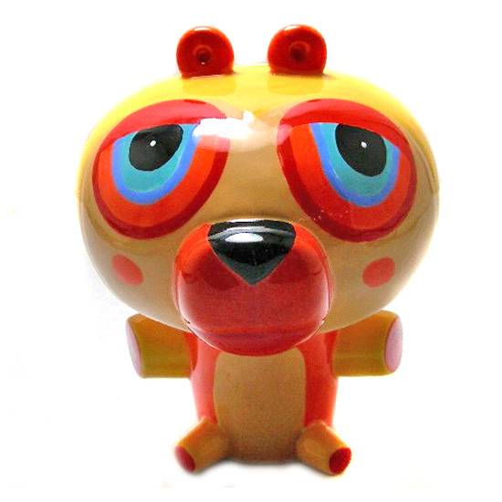 This is a money bank with cartoon designs. The money bank is painted colourfully to give an attractive appearance.
