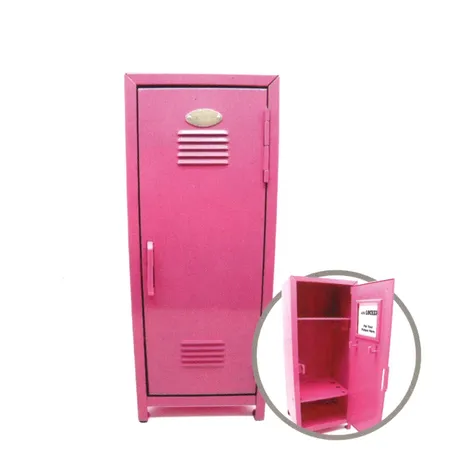 This unique money box features the appearance of a rectangular metal locker. The hot pink money box is accented with chic graphics on the body. The novel money box is a perfect decoration for your desktop.