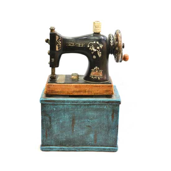 This money box features a durable wooden structure in blue and brown. It is designed in a sewing machine shape with a vivid and realistic look. The retro design fills with so many memories of your childhood.