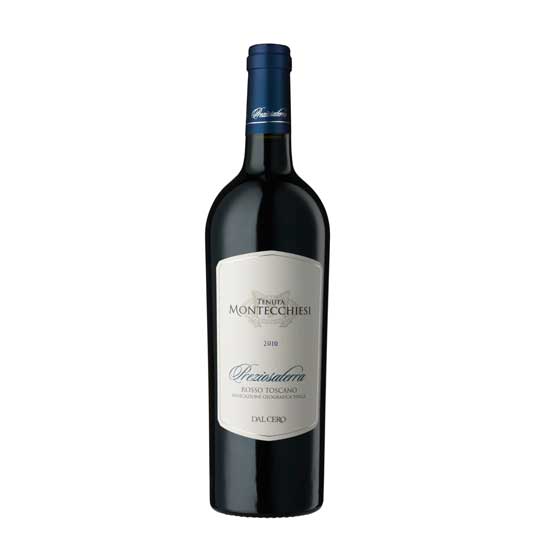 Displayed is a bottle of Rosso Toscano that is made in the famous region of Tuscany, Italy. A perfect blend of sangiovese and syrah, this red wine has a fruity hint and a rustic tang, which work together like magic. This delicious red wine is ideal for meat dishes and cheeses.