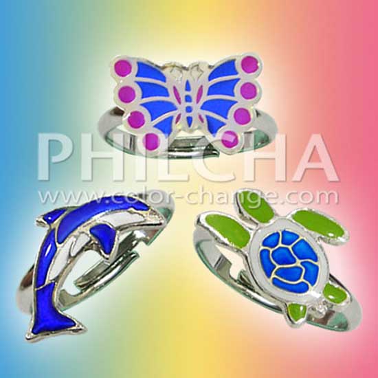 The ring series here feature colorful mosaic patterns. The colors on the rings change to reveal your emotion. The settings are polished with a shiny touch.