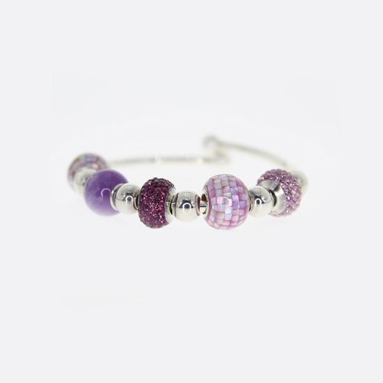 925 Sliver Bangle with Mosaic Mother of Pearl and Swarovski Crystal Beans