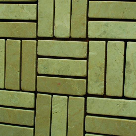 This is mosaic stone tile in a unique wafer-like pattern. The earthy and natural mix of light colors makes it a distinct, rich and elegant look. This stone tile is suitable for both indoor and outdoor applications.