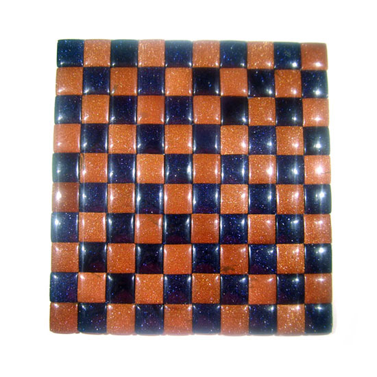 The mosaic tile features brown and dark blue checkerboard patterns. Made of quality sandstone, the tile ensures high quality and a long serving time. The mosaic tile can be on standard walls, floors, tabletops, swimming pools, etc.